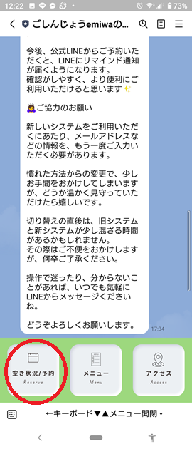 ④既存の方は既存タブをタップして、メニューを選択してください。